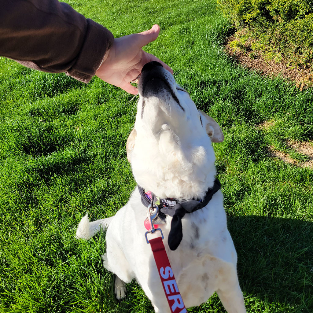 This months pet of the month is Aria who is an amazing dog that also happens to be a service animal. She has the sweetest face and the most innocent eyes imaginable. Aria does amazing on walks and overall just has a great time when we are with her. Aria’s favorite treat’s are chicken feet which is really unique. We love Aria and its very easy to see why!